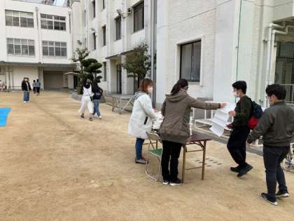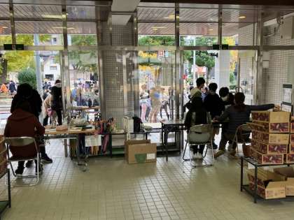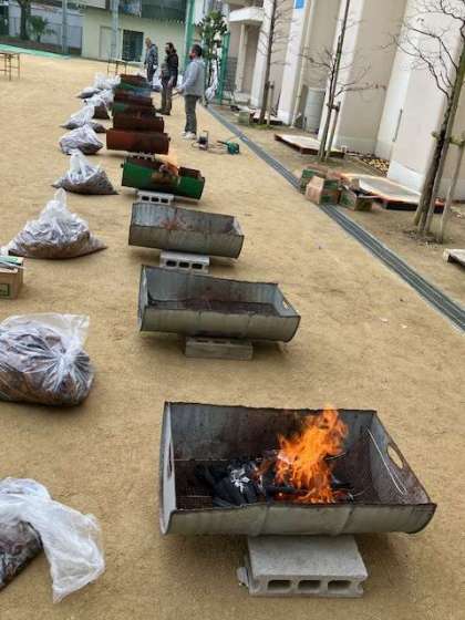 受け付けをすませて、お芋をもらって、自分でアルミホイルに包みます。