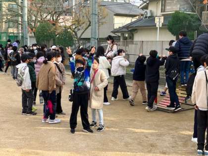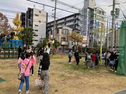 お芋をドラム缶に入れてもらえば、後は焼けるのを待つだけ!