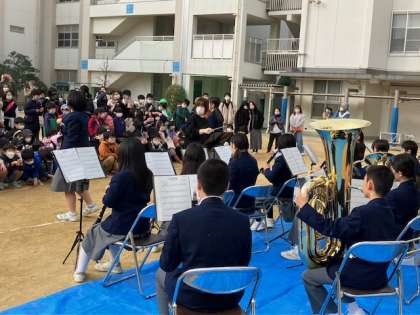 メリークリスマスで、新豊崎中学校吹奏楽部が出演してくれました!
