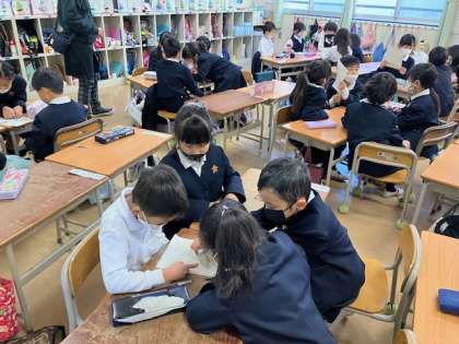 どの学年、クラスでも、班ごとに真剣に考えてました〜。