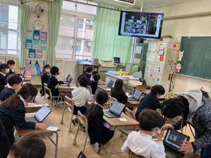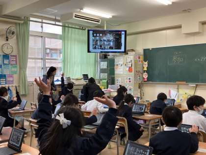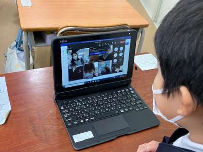 早速、ティームズでつなぐと、教室のテレビにみんなの顔が映りました!
