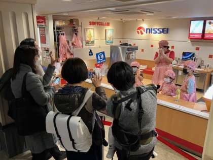 小さい子どもたちがソフトクリームづくりをしていました。お母さん方がうれしそう!