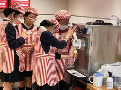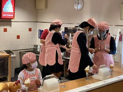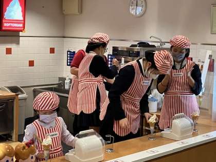 うまく回しながらコーンにクリームを乗せるのが難しそうです。これにいろんなかわいいトッピングを楽しみます。