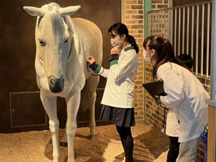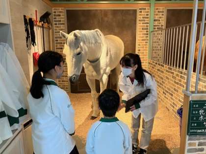 獣医さんは、馬の目を見て健康かどうかの判断をしたり、体温を測ったりしました。いい感じ!