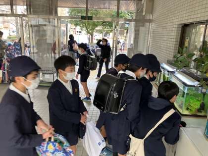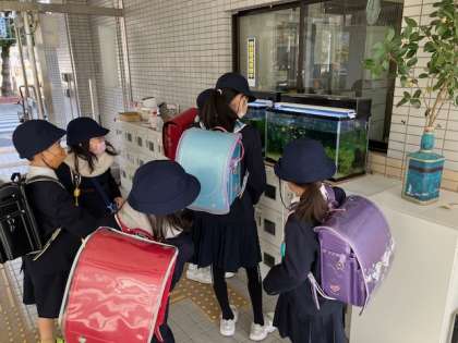 冬休み中に、グッピーの赤ちゃんがたくさん生まれました。このことを始業式で伝えていたので、帰り際には、多くの子が興味深そうに水槽を覗いてくれていました。