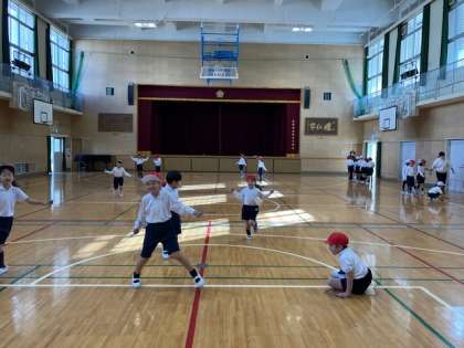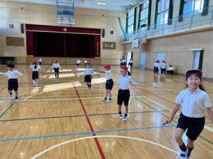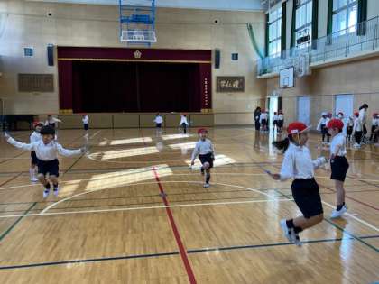 来週の取組みに向けて、各学年で縄跳びの練習をしています。1年生、けっこうみんな上手にできています。