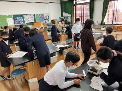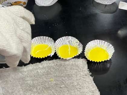 科学クラブでは、今回はカラーキャンドルづくりに挑戦です。白色のロウソクを熱で溶かして、色粉に流し込んで芯をつけます。