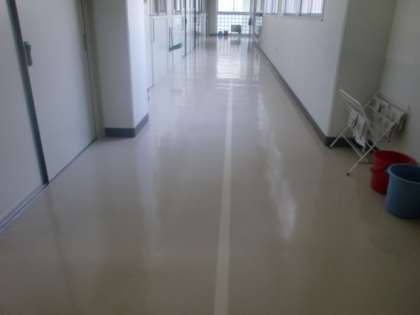 夏休みを利用して廊下の長尺シートにワックスがけを行いました。