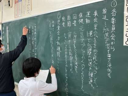 児童会運営委員会の様子です。各委員会からの報告をまとめた後、児童会活動週間の取り組みについて相談していました。