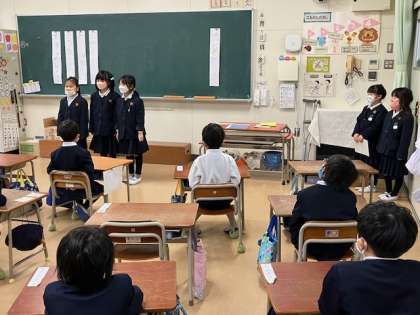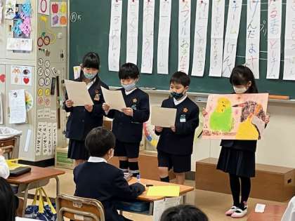 参観日が近づいてきました。来週末(2月17日)なので、1年生、2年生の教室では当日の発表会の練習をしています。