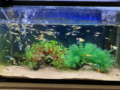 もし、ご希望があれば、子ども・赤ちゃんのグッピーを10匹ずつほど、引き取っていただければと思っています。10組ほどお渡しできるかと思いますが、水槽内に何匹いるのか数えることが難しいので、お渡しするご家庭には電話で連絡させていただきます。