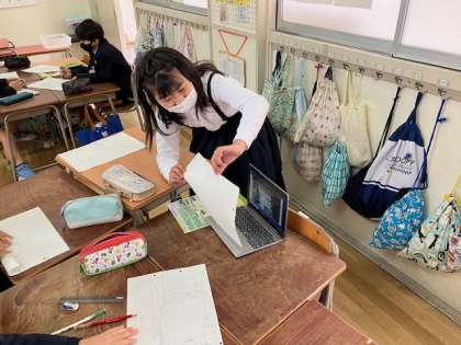 休んでいる子には、リモートでプリントを見せてあげながら、一緒に取り組んでいました。