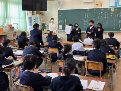 4年生の授業で、「発表」をしていました。自分たちで調査した内容を、みんなに発表します。