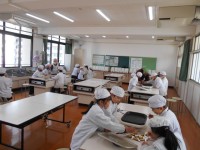 ようやく準備ができて教室内に呼ばれると、練習の成果あって、上手に献立紹介といただきますをすることができました。