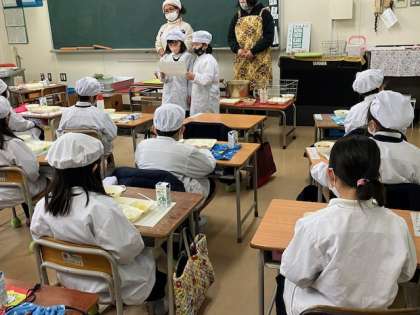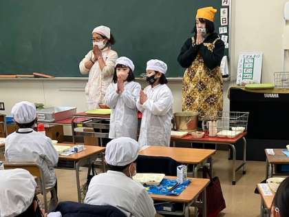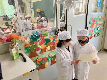ようやく準備ができて教室内に呼ばれると、練習の成果あって、上手に献立紹介といただきますをすることができました。