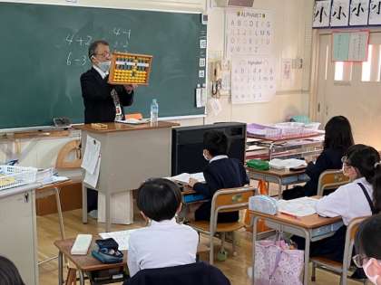 3年生で「そろばん教室」をしました。そろばんの先生にお越しいただいて、2時間コースで教えていただきました。