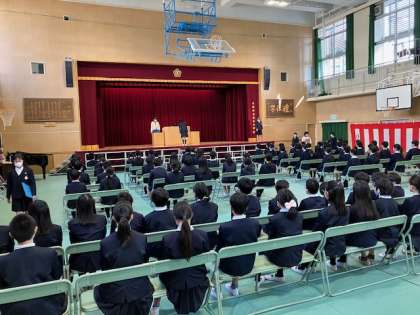いよいよ、卒業式が一週間後となりました。今日は、卒業生と在校生代表としての5年生との初めての合同練習をしました。