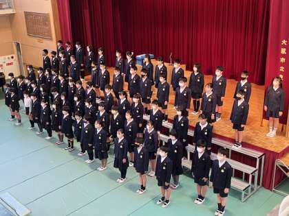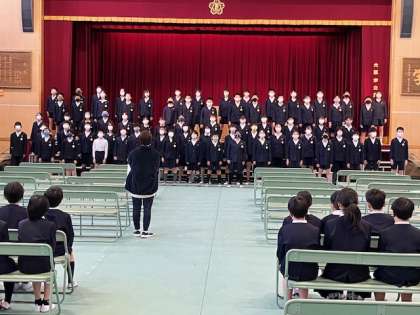 明日は卒業式の予行です。今日は6年生と在校生代表として参列する5年生が一緒に練習しました。