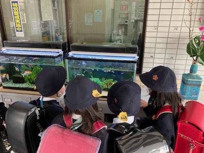今朝、新たにグッピーの赤ちゃんが泳いでいました。この土・日に誕生したんですね。登校した子どもたちもすぐに気づいてくれました。よろしく!