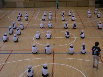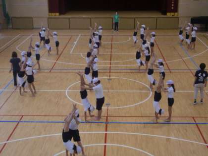 体育の器械運動で倒立の練習をしています。日ごろは倒立など滅多にしなので難しいと思います。