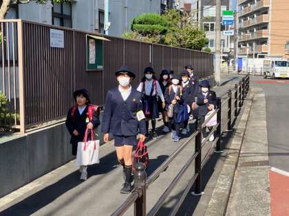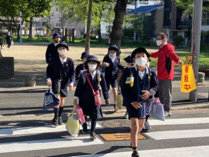 入学したての1年生も班長さん率いる登校班で登校してきました。班長さんは1年生の歩調に合わせて、ゆっくりゆっくり歩いてくれていました。ありがとう!
