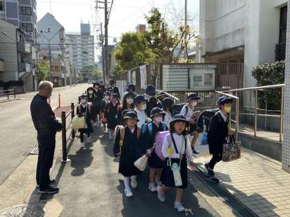 朝の集団登校、2日めです。