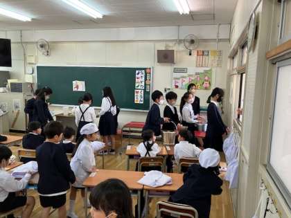 ごちそうさまの後、6年生が後片付けにも来てくれました。