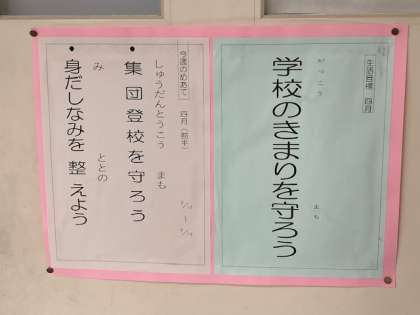今月の目標は、集団登校と身だしなみ、頑張れ〜!!