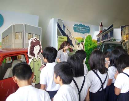 お話を聞いて、展示を見た後で実際に自動車を組み立てている工場を見学しました。