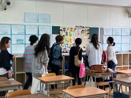 授業参観の後、教室の掲示物を見ていただけたと思います。子どもたちの書いたものや絵など、保護者としては興味いっぱいのものですね。