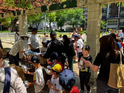 こいのぼりが見事に上がった後は、みんなお菓子をもらって解散!