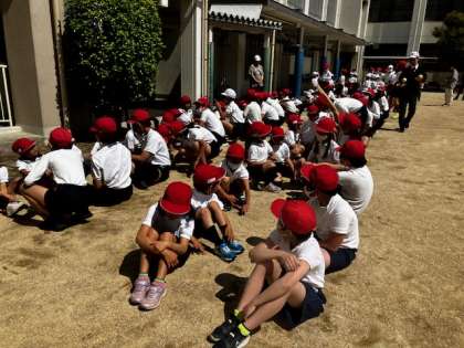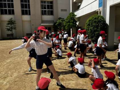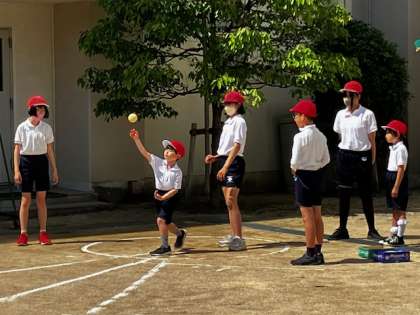 今日から体力測定のソフトボール投げが始まります。今日は1年生ですが、投げ方を知ることからなので、6年生がつきっきりで教えてくれました。