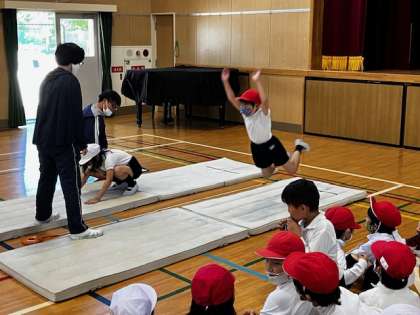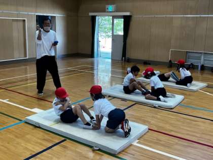 今日はソフトボール投げ・立ち幅跳び・上体起こし・反復横跳びをしました。この他に、握力・長座体前屈・20mシャトルラン・50m走を行います。