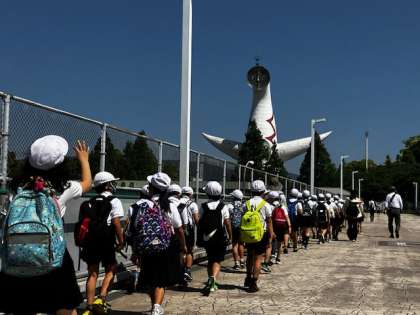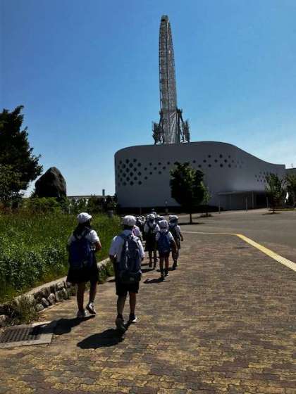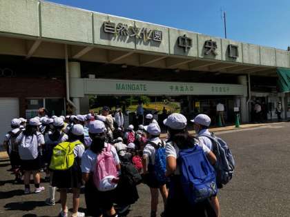 万博記念公園に到着しました。予想通り、行きの電車の中から遠足の学校がいっぱいです!