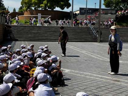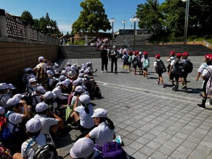 鶴見緑地駅に到着しました。た〜くさんの学校が遠足にきています。電車の中も駅も公園も、遠足の子どもたちでいっぱい!