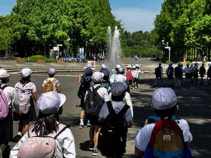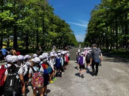 今からトイレ休憩後、公園内を散策して、広場で遊びます。