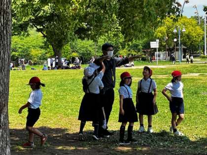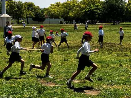 暑い中、いくらでも遊びます。走って走って、楽しい〜!