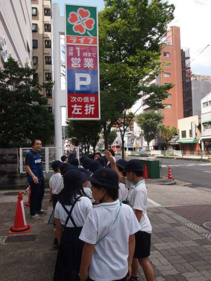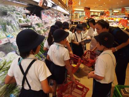 社会科の「店で働く人々の仕事」で、ライフ本庄店に見学に行きました。買い物体験、バックヤードの見学、質問タイムなどを通して、スーパーマーケットで働いている人々の仕事について直に学習しました。