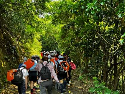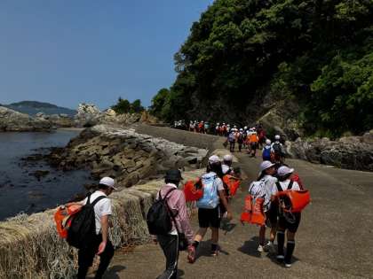 海岸沿いに山を越えていきます。虫がいるたびに、絶叫が聞こえます!その声に驚かされます。