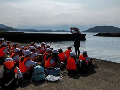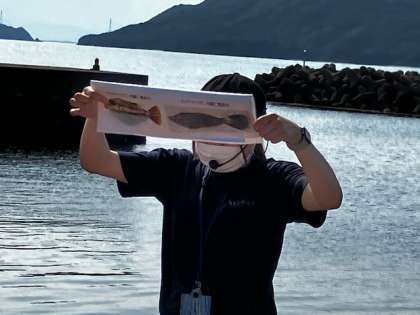 これから釣りを始めます。まず、磯観察と同じように、毒のある魚について説明していただきました。オコゼやフグの仲間で、毒のある魚を写真で見せてもらいます。
