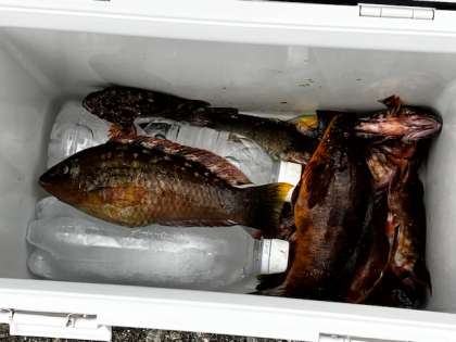 1組VS2組の釣り大会の結果は、1組が最後に大きなベラ、クジメというお魚を釣り上げて、重量的にはどっこいどっこいというところに追いついたようです!