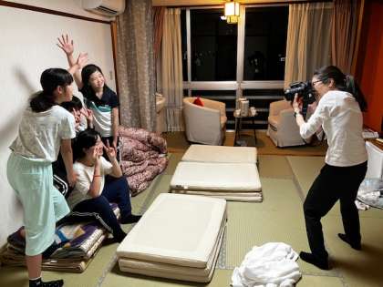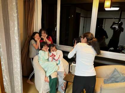 自由時間に写真屋さんかま、部屋ごとに写真を撮ってくれて回っています。それぞれ、かわいいポーズをとっていました。
