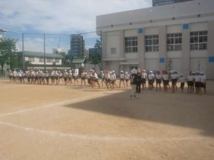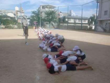運動会に備えて「体つくり運動」を行っています。