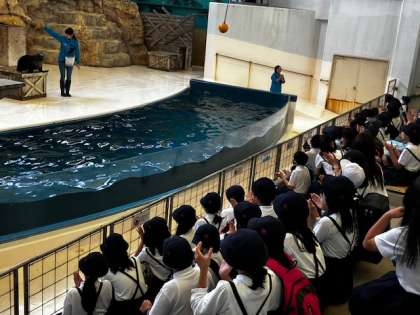 大ジャンプでボールを取って、アシカショーの終了です。大拍手!