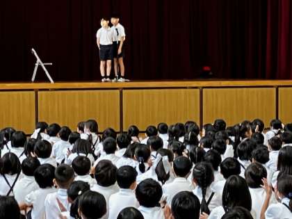 校長先生からは、「ちがい」についてのお話でした。顔や性格、得意不得意なことがみんな違うように、豊仁小学校には、育った所、育った国が違う人もたくさんいます。