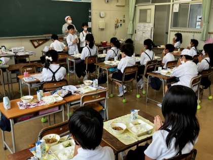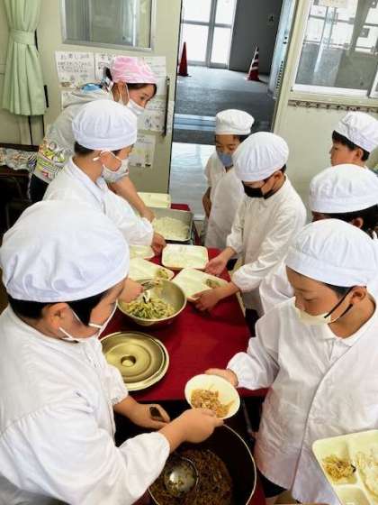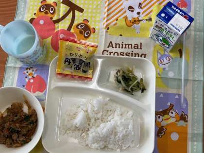 今日の給食献立は、ごはん・マーボーはるさめ・チンゲンサイともやしの甘酢和え・炒り黒豆・牛乳です。