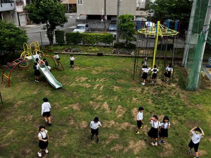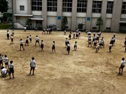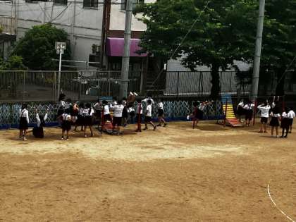 給食後の昼休みは15分ほどですが、たくさんの子どもたちが運動場に出てきて遊びます。