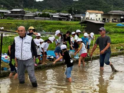 田植えの説明を聞いて、いよいよ田植え開始です。