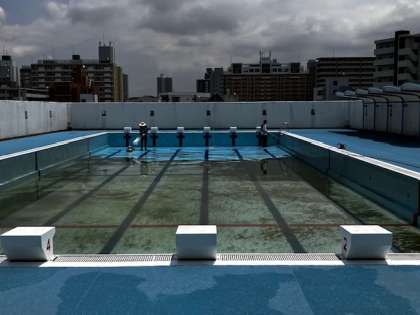 6月下旬からプールの授業が始まります。防火用にプール内に水を溜めておかねばならないので、1年間で藻が生え放題です。
