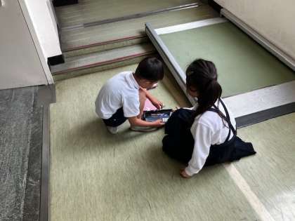 教室移動の途中で、筆箱を落として文房具が散らばってしまった子を、後から来た子が手伝ってあげていました。